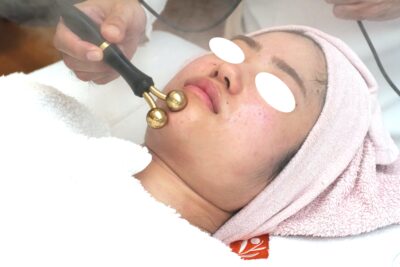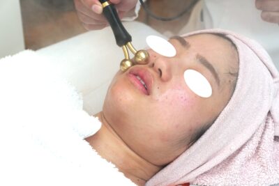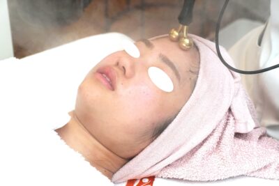 基本「ニキビケアコース」の施術ですが、表情筋バランスを