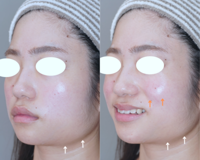 れば、側頭部まで筋肉が連動して頬の輪郭が出て
