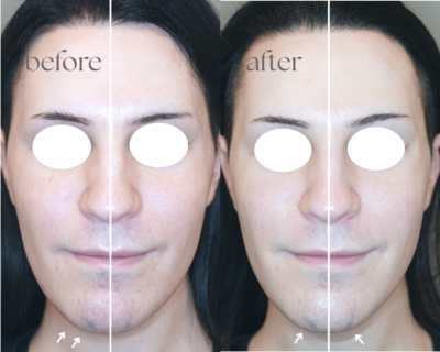 アゴ正面の首元にたるみは残りますが、フェイスライン