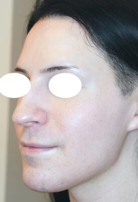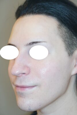 鼻の中心が画像の向かって右側、左顔面に引っ張